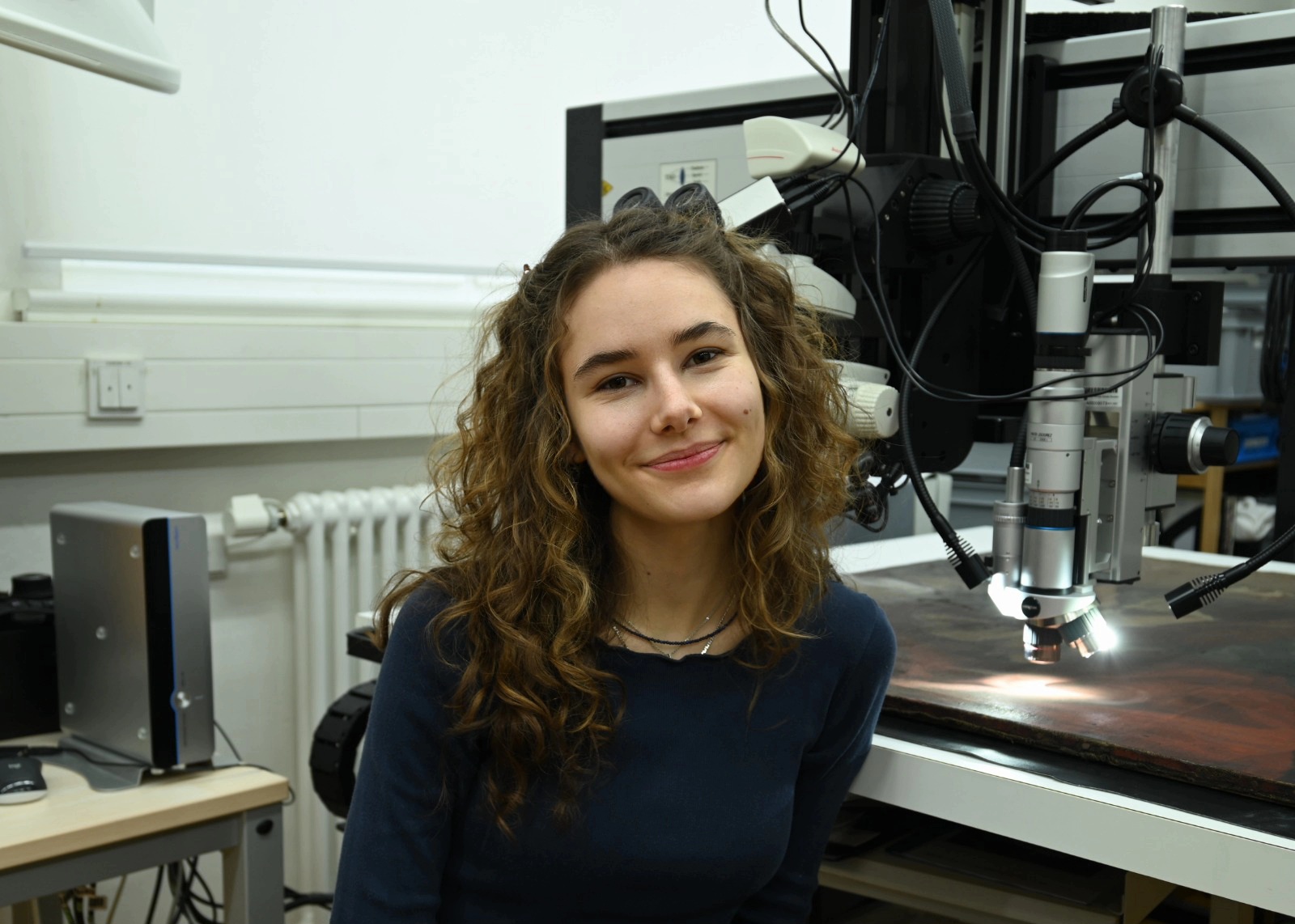Für Dresden habe ich mich entschieden, weil ich die Stadt schön finde und weil andere Vorpraktikant:innen positiv von der Hochschule erzählt haben. Mir gefällt hier besonders, dass die kunsttechnologischen Untersuchungen eine große Rolle spielen. Weitere Praktika habe ich in der Mannheimer Kunsthalle, im Landesmuseum Darmstadt und in der Prager Nationalgalerie gemacht. Es ist mir wichtig, Einblicke in verschiedene berufliche Zusammenhänge zu bekommen.